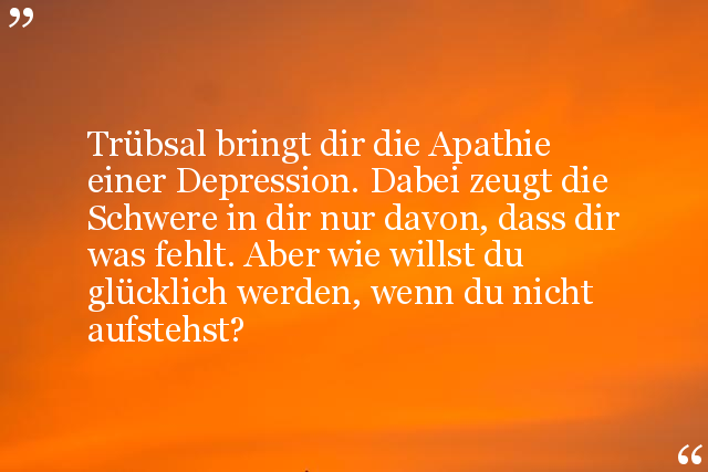 Trübsal bringt dir die Apathie einer Depression. Dabei zeugt die Schwere in dir nur davon, dass dir was fehlt. Aber wie willst du glücklich werden, wenn du nicht aufstehst?