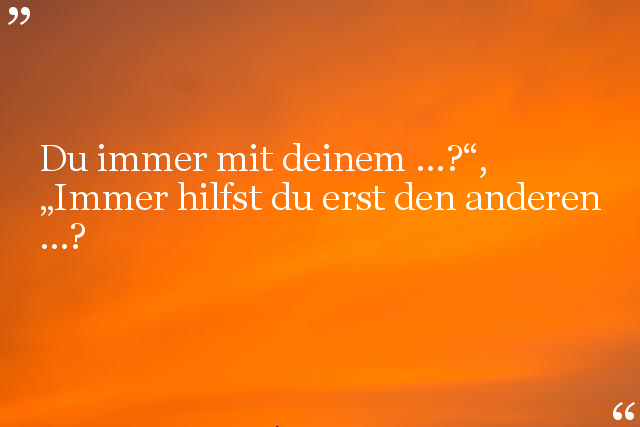 Du immer mit deinem ...?“, „Immer hilfst du erst den anderen ...?