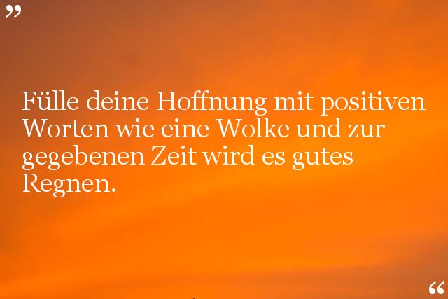 Fülle deine Hoffnung mit positiven Worten wie eine Wolke und zur gegebenen Zeit wird es gutes Regnen.