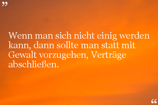 Wenn man sich nicht einig werden kann, dann sollte man statt mit Gewalt vorzugehen, Verträge abschließen.