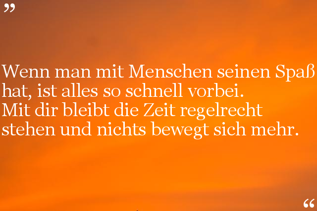 Wenn man mit Menschen seinen Spaß hat, ist alles so schnell vorbei. Mit dir bleibt die Zeit regelrecht stehen und nichts bewegt sich mehr.