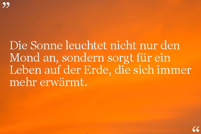 Die Sonne leuchtet nicht nur den Mond an, sondern sorgt für ein Leben auf der Erde, die sich immer mehr erwärmt.
