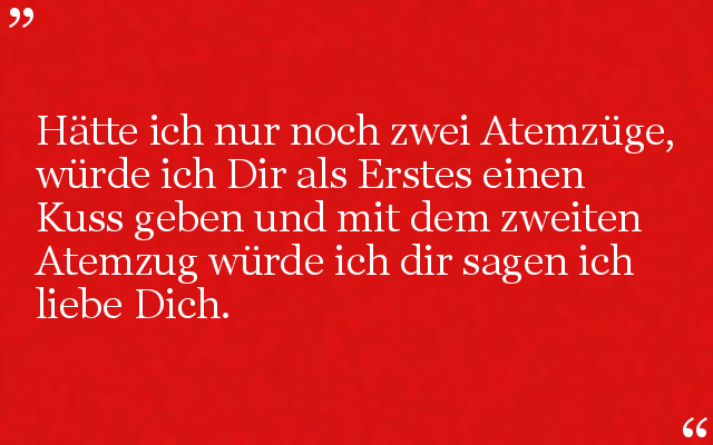 Hätte ich nur noch zwei Atemzüge, würde ich Dir als Erstes einen Kuss geben und mit dem zweiten Atemzug würde ich dir sagen ich liebe Dich.