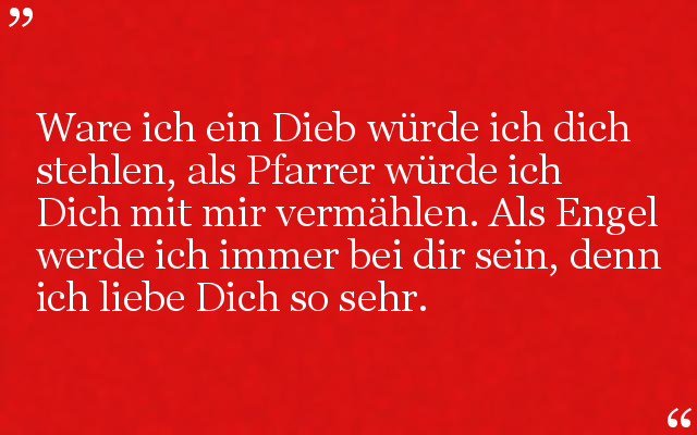 Ware ich ein Dieb würde ich dich stehlen, als Pfarrer würde ich Dich mit mir vermählen. Als Engel werde ich immer bei dir sein, denn ich liebe Dich so sehr.