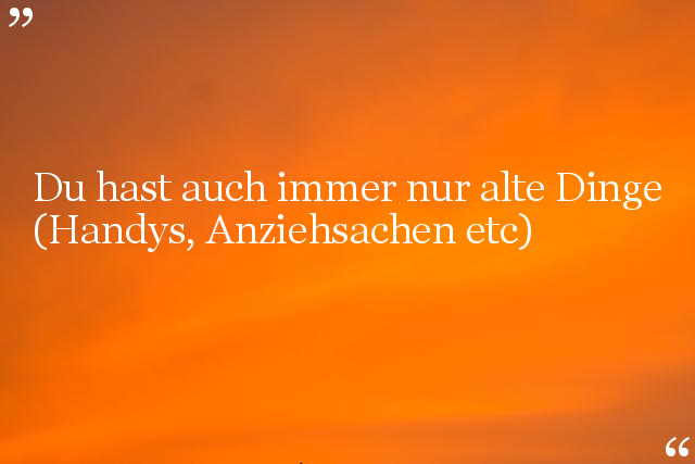 Du hast auch immer nur alte Dinge (Handys, Anziehsachen etc)