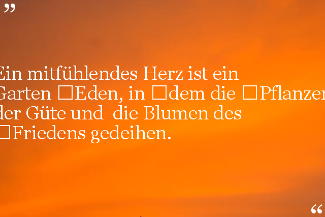 Ein mitfühlendes Herz ist ein Garten Eden, in dem die Pflanzen der Güte und die Blumen des Friedens gedeihen.