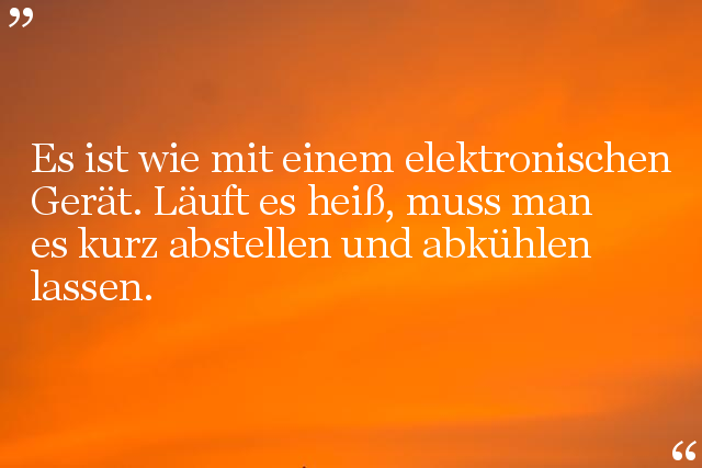 Es ist wie mit einem elektronischen Gerät. Läuft es heiß, muss man es kurz abstellen und abkühlen lassen.