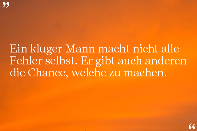 Ein kluger Mann macht nicht alle Fehler selbst. Er gibt auch anderen die Chance, welche zu machen.