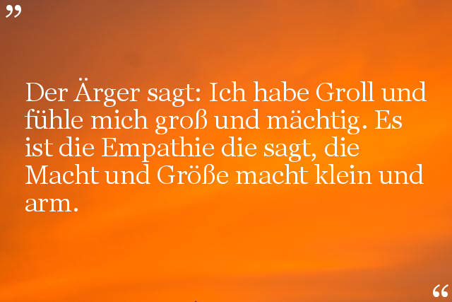 Der Ärger sagt: Ich habe Groll und fühle mich groß und mächtig. Es ist die Empathie die sagt, die Macht und Größe macht klein und arm.