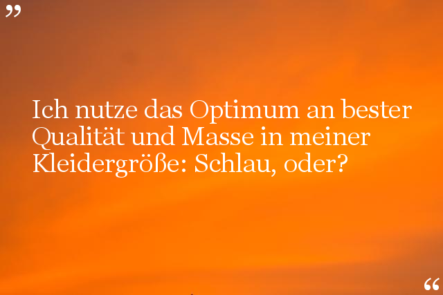 Ich nutze das Optimum an bester Qualität und Masse in meiner Kleidergröße: Schlau, oder?