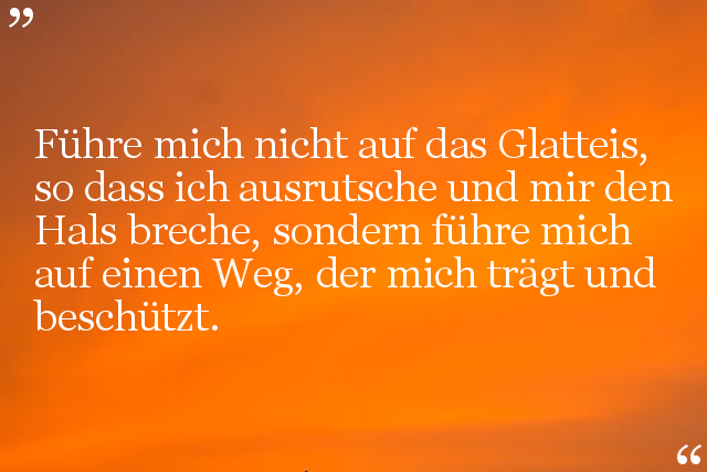 Führe mich nicht auf das Glatteis, so dass ich ausrutsche und mir den Hals breche, sondern führe mich auf einen Weg, der mich trägt und beschützt.