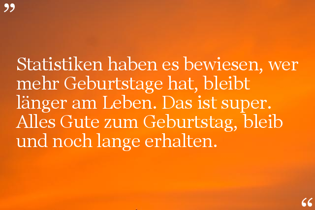 Statistiken haben es bewiesen, wer mehr Geburtstage hat, bleibt länger am Leben. Das ist super. Alles Gute zum Geburtstag, bleib und noch lange erhalten.