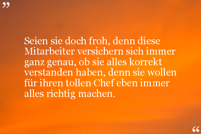 Seien sie doch froh, denn diese Mitarbeiter versichern sich immer ganz genau, ob sie alles korrekt verstanden haben, denn sie wollen für ihren tollen Chef eben immer alles richtig machen.