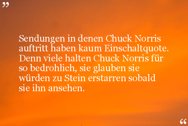 Sendungen in denen Chuck Norris auftritt haben kaum Einschaltquote. Denn viele halten Chuck Norris für so bedrohlich, sie glauben sie würden zu Stein erstarren sobald sie ihn ansehen.