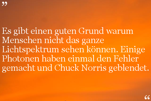 Es gibt einen guten Grund warum Menschen nicht das ganze Lichtspektrum sehen können. Einige Photonen haben einmal den Fehler gemacht und Chuck Norris geblendet.