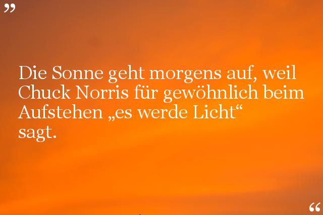 Die Sonne geht morgens auf, weil Chuck Norris für gewöhnlich beim Aufstehen „es werde Licht“ sagt.