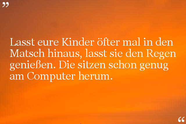 Lasst eure Kinder öfter mal in den Matsch hinaus, lasst sie den Regen genießen. Die sitzen schon genug am Computer herum.