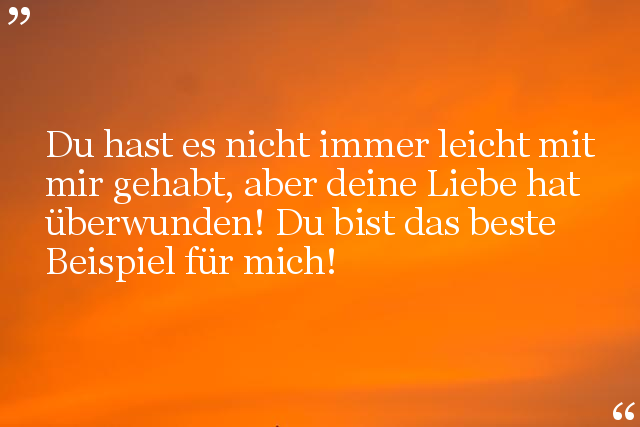 Du hast es nicht immer leicht mit mir gehabt, aber deine Liebe hat überwunden! Du bist das beste Beispiel für mich!