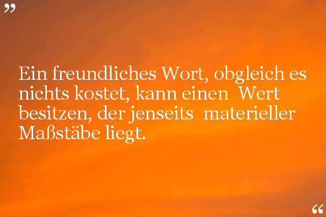 Ein freundliches Wort, obgleich es nichts kostet, kann einen Wert besitzen, der jenseits materieller Maßstäbe liegt.