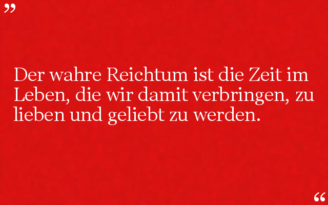 Der wahre Reichtum ist die Zeit im Leben, die wir damit verbringen, zu lieben und geliebt zu werden.