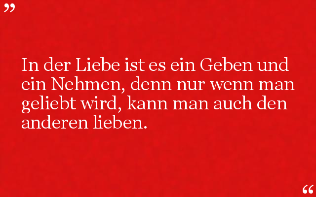 In der Liebe ist es ein Geben und ein Nehmen, denn nur wenn man geliebt wird, kann man auch den anderen lieben.