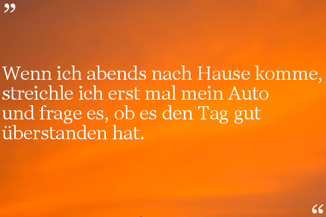 Wenn ich abends nach Hause komme, streichle ich erst mal mein Auto und frage es, ob es den Tag gut überstanden hat.