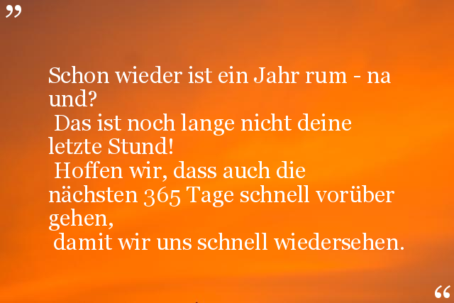 Hoffen wir, dass auch die nächsten 365 Tage schnell vorüber gehen,