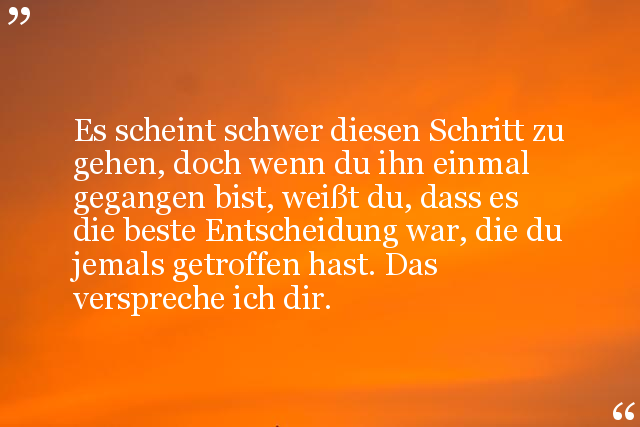 Es scheint schwer diesen Schritt zu gehen, doch wenn du ihn einmal gegangen bist, weißt du, dass es die beste Entscheidung war, die du jemals getroffen hast. Das verspreche ich dir.