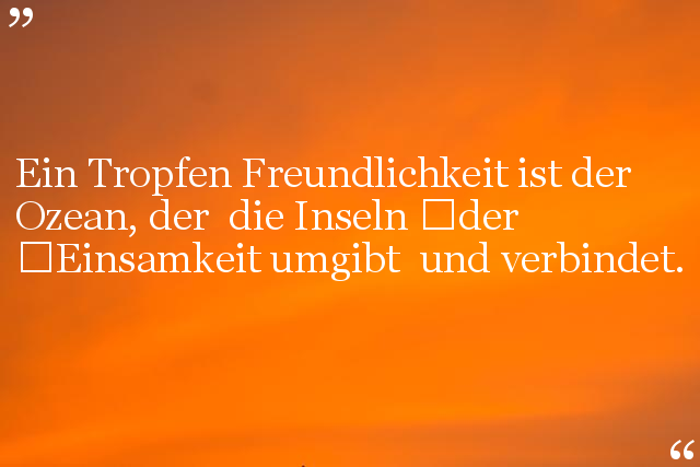 Ein Tropfen Freundlichkeit ist der Ozean, der die Inseln der Einsamkeit umgibt und verbindet.
