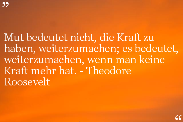 Mut bedeutet nicht, die Kraft zu haben, weiterzumachen; es bedeutet, weiterzumachen, wenn man keine Kraft mehr hat. - Theodore Roosevelt