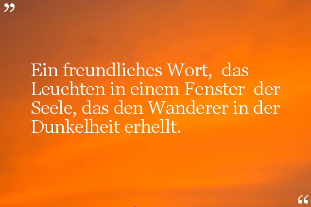 Ein freundliches Wort, das Leuchten in einem Fenster der Seele, das den Wanderer in der Dunkelheit erhellt.