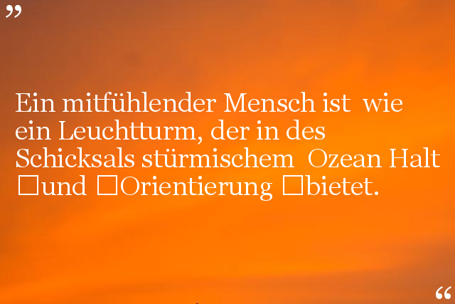 Ein mitfühlender Mensch ist wie ein Leuchtturm, der in des Schicksals stürmischem Ozean Halt und Orientierung bietet.