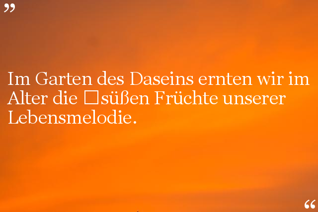 Im Alter kann man auf den Baum seines Lebens zurück blicken und seine Früchte, die mit der Zeit dort gewachsen sind endlich ernten und genießen.