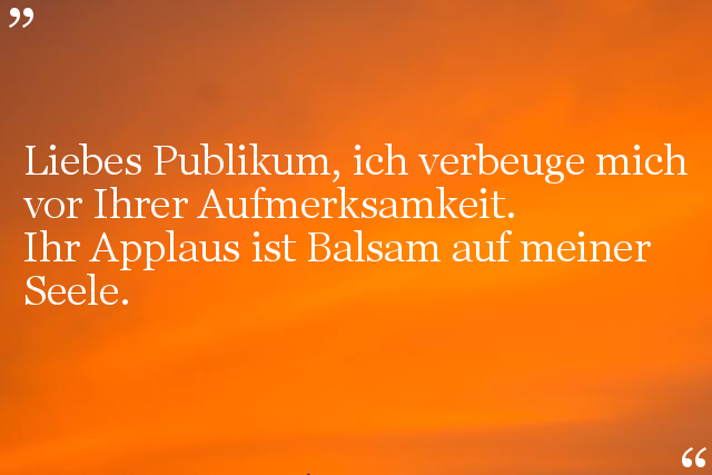 Liebes Publikum, ich verbeuge mich vor Ihrer Aufmerksamkeit.