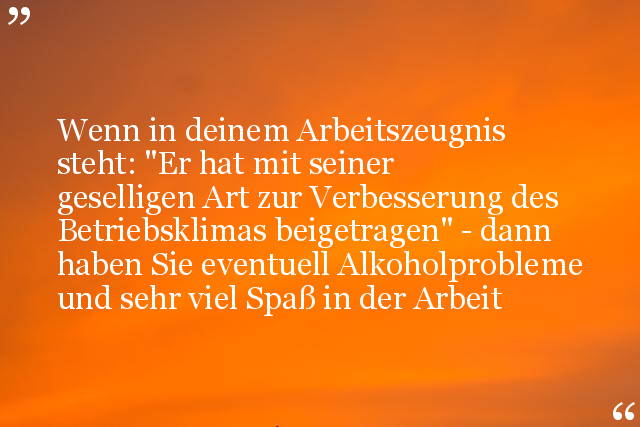 Wenn in deinem Arbeitszeugnis steht: "Er hat mit seiner geselligen Art zur Verbesserung des Betriebsklimas beigetragen" - dann haben Sie eventuell Alkoholprobleme und sehr viel Spaß in der Arbeit