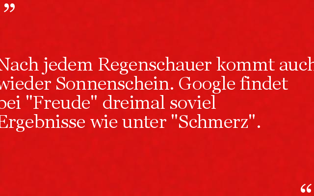 Nach jedem Regenschauer kommt auch wieder Sonnenschein. Google findet bei "Freude" dreimal soviel Ergebnisse wie unter "Schmerz".