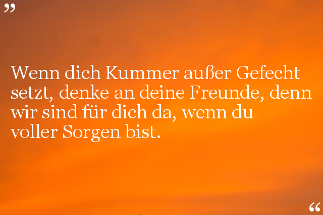Wenn dich Kummer außer Gefecht setzt, denke an deine Freunde, denn wir sind für dich da, wenn du voller Sorgen bist.