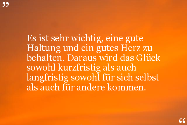 Es ist sehr wichtig, eine gute Haltung und ein gutes Herz zu behalten. Daraus wird das Glück sowohl kurzfristig als auch langfristig sowohl für sich selbst als auch für andere kommen.