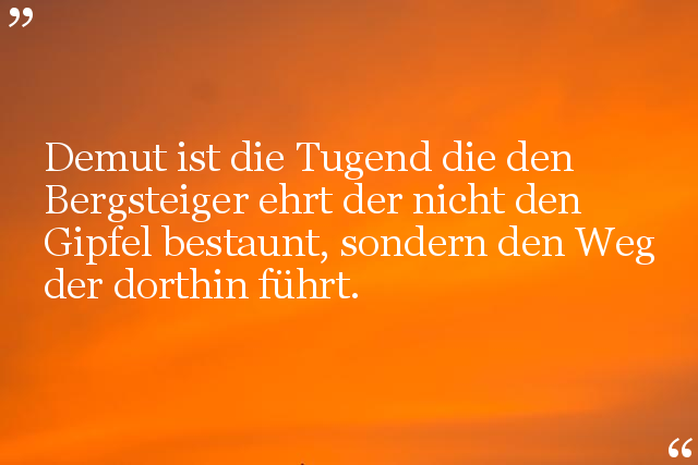 Demut ist die Tugend die den Bergsteiger ehrt der nicht den Gipfel bestaunt, sondern den Weg der dorthin führt.
