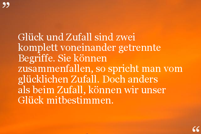 Glück und Zufall sind zwei komplett voneinander getrennte Begriffe. Sie können zusammenfallen, so spricht man vom glücklichen Zufall. Doch anders als beim Zufall, können wir unser Glück mitbestimmen.