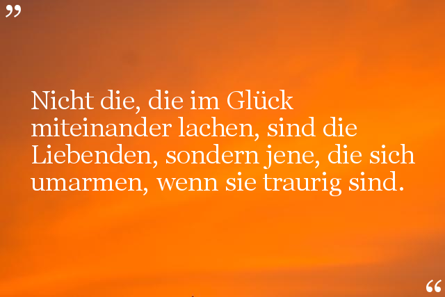 Nicht die, die im Glück miteinander lachen, sind die Liebenden, sondern jene, die sich umarmen, wenn sie traurig sind.
