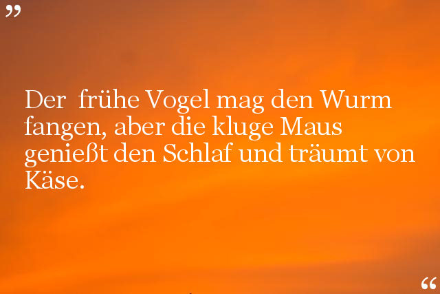 Der frühe Vogel mag den Wurm fangen, aber die kluge Maus genießt den Schlaf und träumt von Käse.