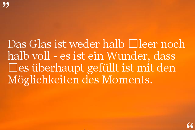 Das Glas ist weder halb leer noch halb voll - es ist ein Wunder, dass es überhaupt gefüllt ist mit den Möglichkeiten des Moments.