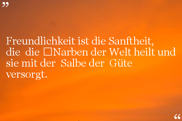 Freundlichkeit ist die Sanftheit, die die Narben der Welt heilt und sie mit der Salbe der Güte versorgt.