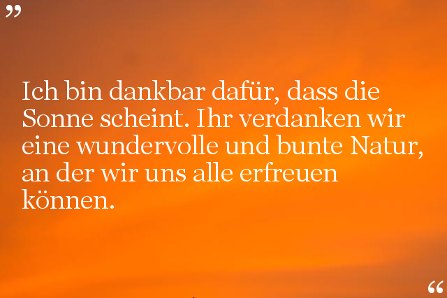 Ich bin dankbar dafür, dass die Sonne scheint. Ihr verdanken wir eine wundervolle und bunte Natur, an der wir uns alle erfreuen können.