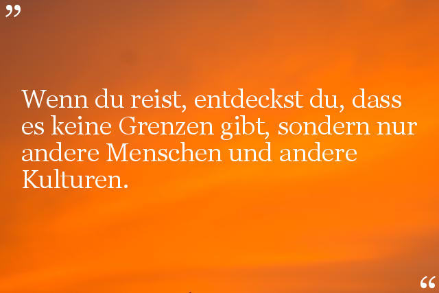 Wenn du reist, entdeckst du, dass es keine Grenzen gibt, sondern nur andere Menschen und andere Kulturen.