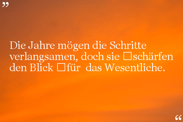 Die Jahre mögen die Schritte verlangsamen, doch sie schärfen den Blick für das Wesentliche.