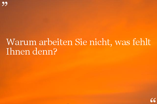 Warum arbeiten Sie nicht, was fehlt Ihnen denn?