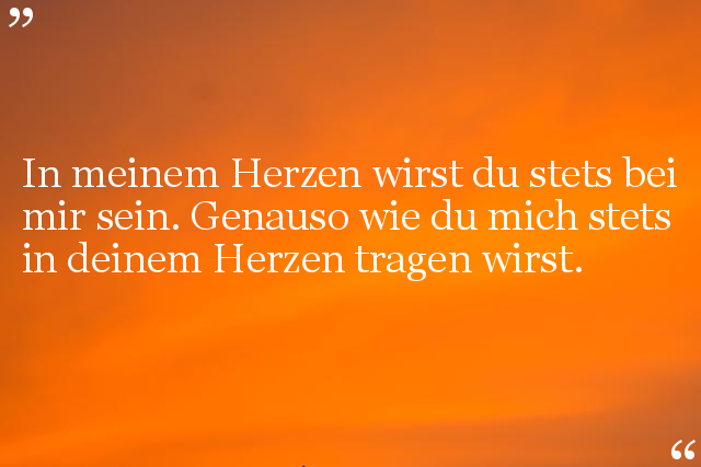 In meinem Herzen wirst du stets bei mir sein. Genauso wie du mich stets in deinem Herzen tragen wirst.