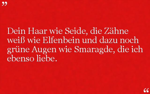 Dein Haar wie Seide, die Zähne weiß wie Elfenbein und dazu noch grüne Augen wie Smaragde, die ich ebenso liebe.